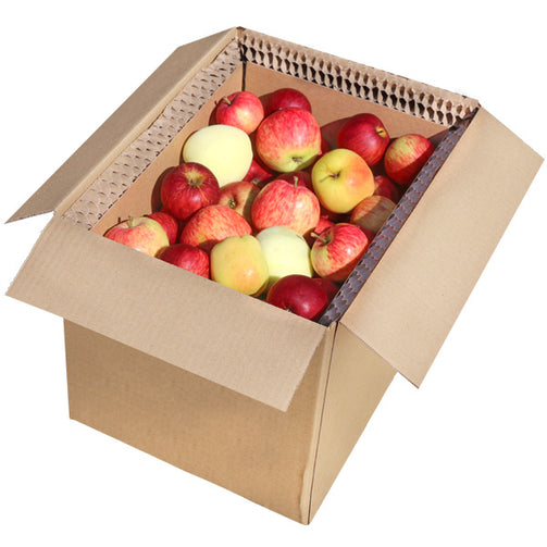 Die Auswahl von 5 alten Obstsorten versenden wir in der Kartonkiste mit Luftpölstern zum Schutz gegen Erschütterungen. Wir sind stolz darauf, dass dieses Produkt, wie alle anderen auch, ohne Plastik auskommt.
