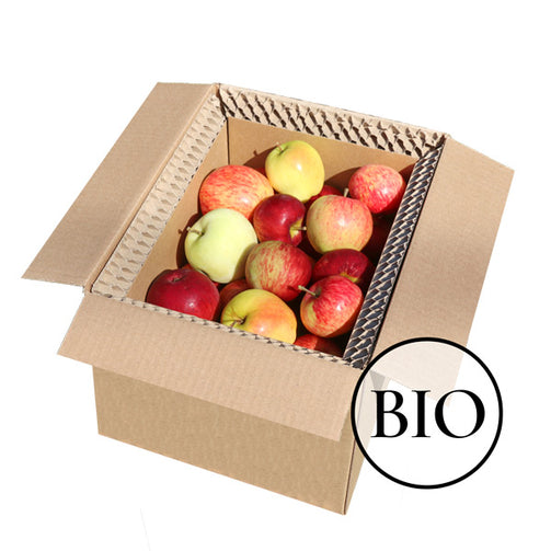 Die Auswahl von 3 alten BIO-Obstsorten versenden wir in der Kartonkiste mit Luftpölstern zum Schutz gegen Erschütterungen. Wir sind stolz darauf, dass dieses Produkt, wie alle anderen auch, ohne Plastik auskommt.